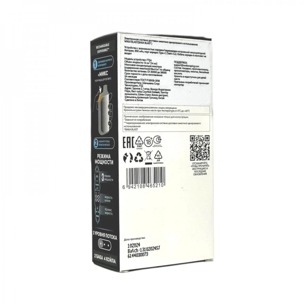 Технические характеристики WAKA BLAST 38000 Hard - Ментол + лед микс