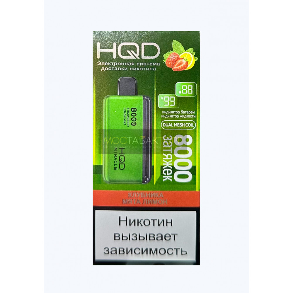 HQD видыMiracle (Миракл) HQD вкусыКлубника мята лимон HQD количество в блоке5 шт